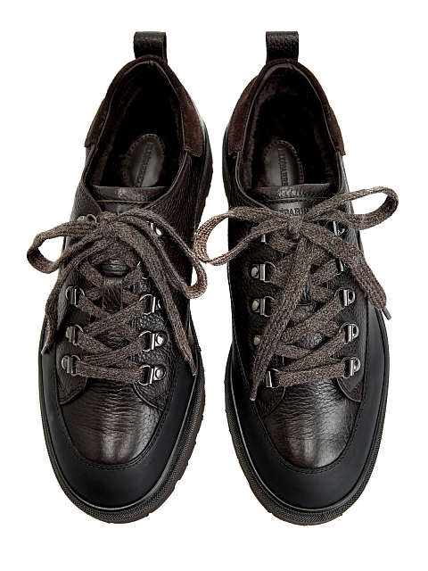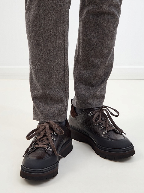Ботинки из крупнозернистой кожи и меха с противоскользящим протектором