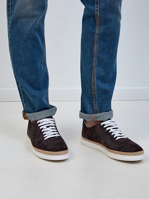 Замшевые кеды с микроперфорацией и отделкой из джута