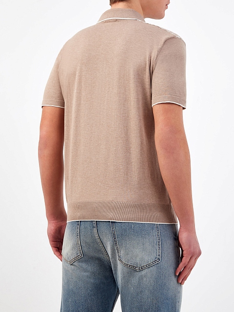 Джемпер-поло из хлопка и шелка с фактурным узором
