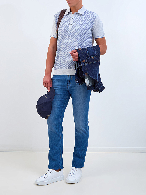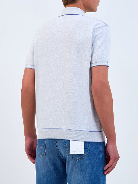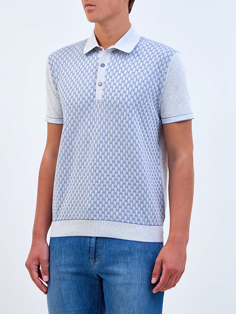 Джемпер-поло из хлопка и шелка с фактурным орнаментом