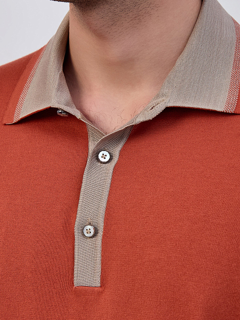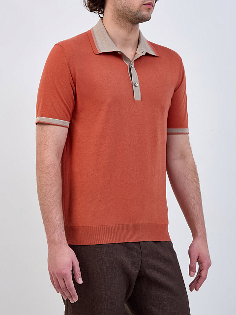 Хлопковый джемпер-поло с волокнами шелка и отделкой colorblock