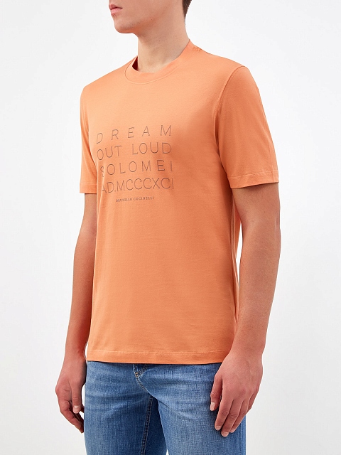 Мужская хлопковая футболка с сезонным принтом dream out loud BRUNELLO_CUCINELLI-M купить за 27 000 руб.