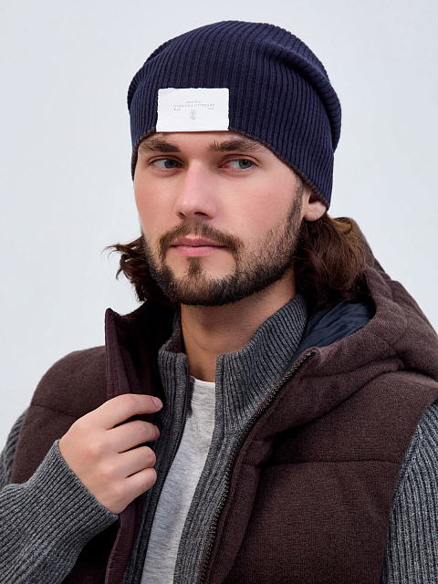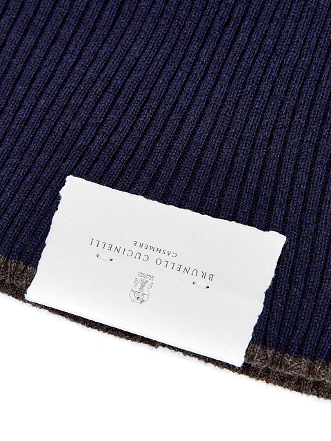 Стильная мужская шапка от Brunello Cucinelli полностью выполнена из мягкой и теплой кашемировой пряжи. Акцентное решение соответствует минималистичному дизайну: внешняя сторона выполнена в насыщенном синем цвете, внутренняя в нейтральном коричневом оттенке. Эластичная вязка в технике английской резинки обеспечивает максимальный комфорт в холодное время года. Сделано в Италии.