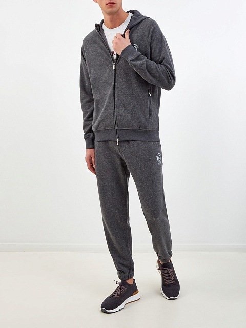 Джоггеры из футера на основе хлопка, шелка и кашемира с принтом