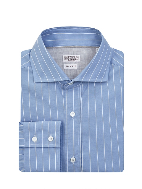 Мужская рубашка slim fit из тонкого хлопкового поплина в полоску BRUNELLO_CUCINELLI-M купить за 62 860 руб.