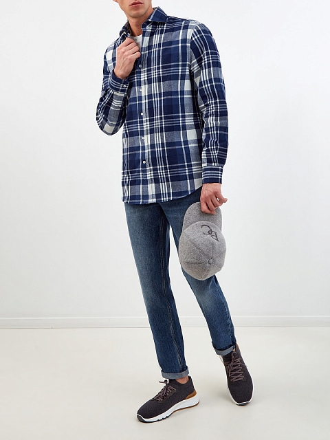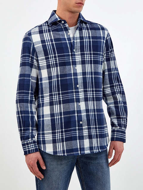 Рубашка Easy из хлопковой фланели с мадрасским узором в клетку