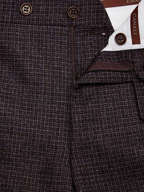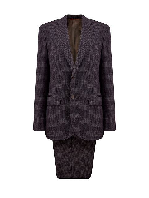 Мужской классический костюм от Сanali создан из тонкой, гибкой и эластичной шерсти. Поверхность благородного коричневого оттенка украшена лаконичным микро-узором. Внутренняя комфортная хлопковая отделка брюк дополнена фирменной символикой, атласная подкладка пиджака из купро — потайными кармашками и монограммой бренда. Застежка пиджака стандартной длины осуществляется на две пуговицы. Сделано в Италии.