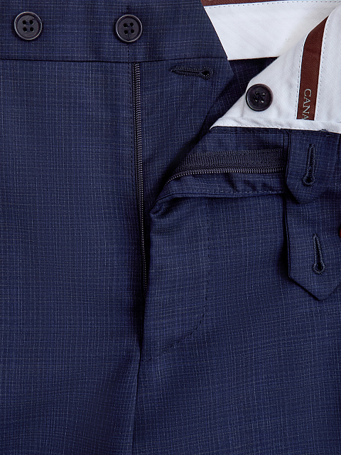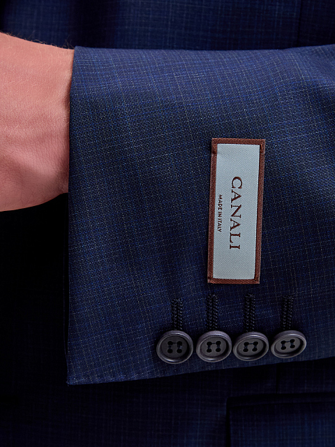 Классический мужской костюм ручной работы от Canali создан из традиционной шерстяной ткани. Поверхность насыщенного оттенка индиго украшена лаконичным принтом в мелованную клетку. Внутренняя комфортная хлопковая отделка брюк дополнена фирменной символикой, атласная подкладка пиджака из купро — потайными кармашками и монограммой бренда. Застежка пиджака стандартной длины осуществляется на две пуговицы. Сделано в Италии.