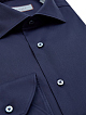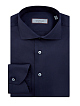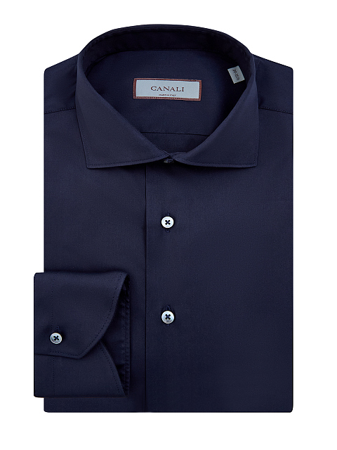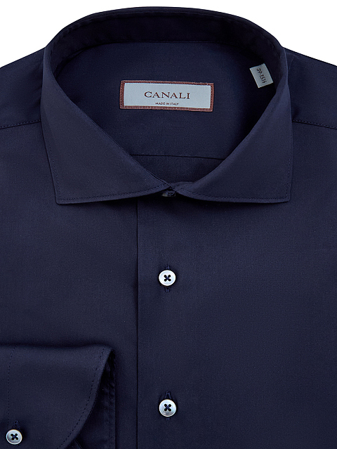 Однотонная рубашка в оттенке индиго от Canali выполнена из эластичного хлопкового поплина — выверенный состав ткани обеспечивает комфорт в движении, волокна полиамида в составе предотвращают образование складок. Классический силуэт идеально подходит для создания торжественных, деловых и повседневных образов. Детали: закругленный нижний край, отложной воротник «акула», застежка на пуговицы из перламутра. Сделано в Италии.