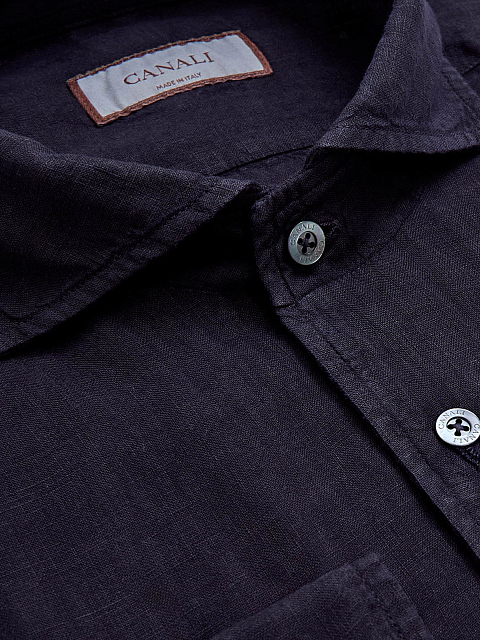 Мужская однотонная рубашка в стиле casual из натурального льна CANALI-M купить за 31 780 руб.