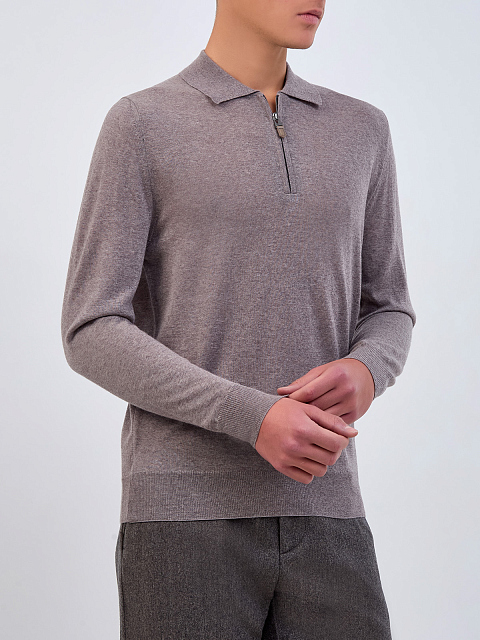 Мужское джемпер-поло из тонкой шерсти с кожаным пуллером CANALI-M купить за 43 920 руб.