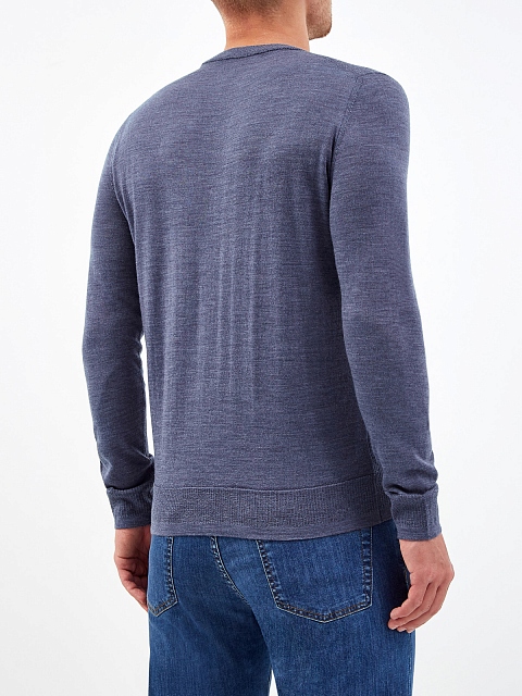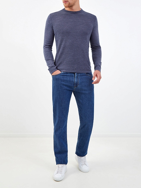 Минималистичный джемпер от Canali выполнен из мягкой шерстяной пряжи. Жаккардовый паттерн на передней планке делает модель идеальной основой для создания повседневных образов в стиле casual. Круглый вырез горловины и эластичная отделка кромок в рубчик завершают лаконичный дизайн. Сделано в Италии.