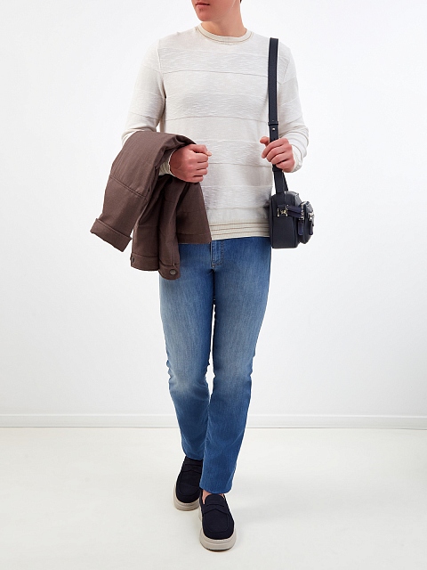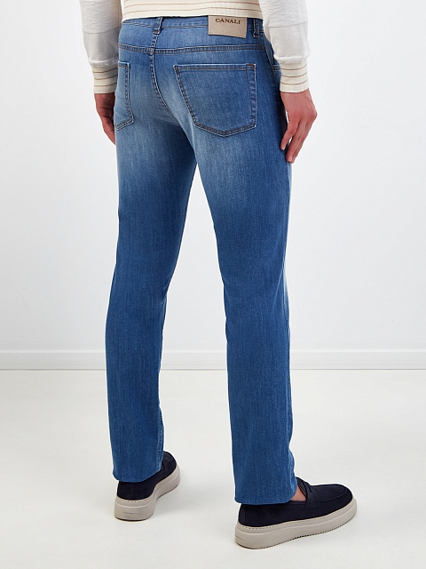Мужские джинсы из окрашенного вручную денима с вышитым логотипом CANALI-M купить за 21 540 руб.