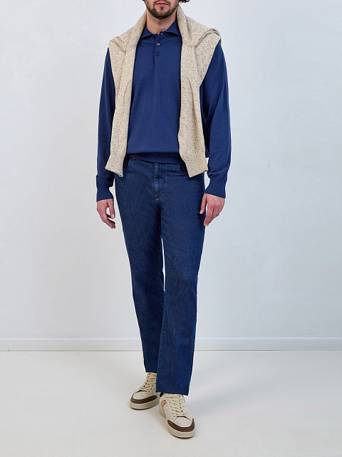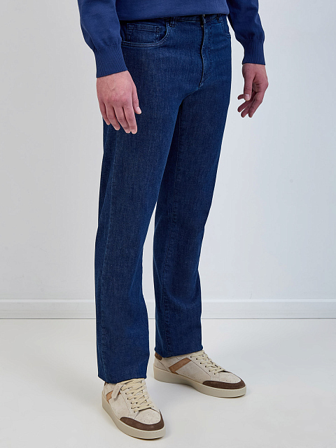 Мужские окрашенные вручную джинсы с кожаным патчем и тиснением CANALI-M купить за 35 770 руб.