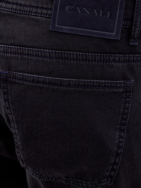 Мужские джинсы от Canali выполнены из хлопкового денима — эластичная ткань с утепленной внутренней поверхностью делает модель идеальной основой для создания повседневных аутфитов. Графитовый оттенок с легким выбеленным эффектом на швах достигнут мастерами бренда вручную, расслабленный акцент в образ вносит нашивка из замши на поясе и прострочка нитью оттенка индиго. Детали: пять карманов, застежка на молнию и пуговицу на передней планке. Сделано в Италии.