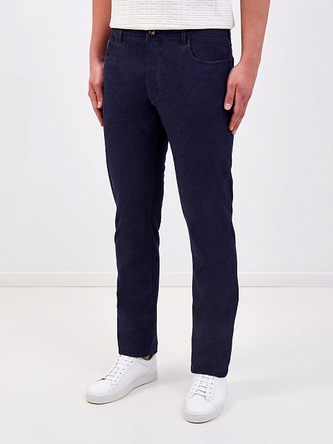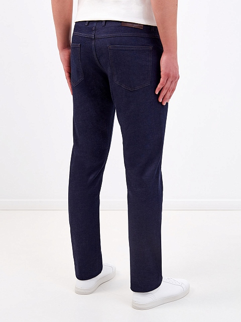 Мужские джинсы силуэта Slim от Canali выполнены из легкого и эластичного денима. Выверенный состав обеспечивает комфорт в движении и делает материал тактильно приятным. Модель в оттенке ночного неба дополнена прострочкой нитью табачного оттенка, которая перекликается с цветом нашивки из кожи на поясе. Фурнитура с фактурным рисунком завершает дизайн. Сделано в Италии.