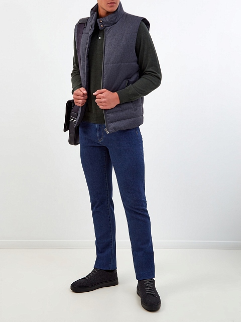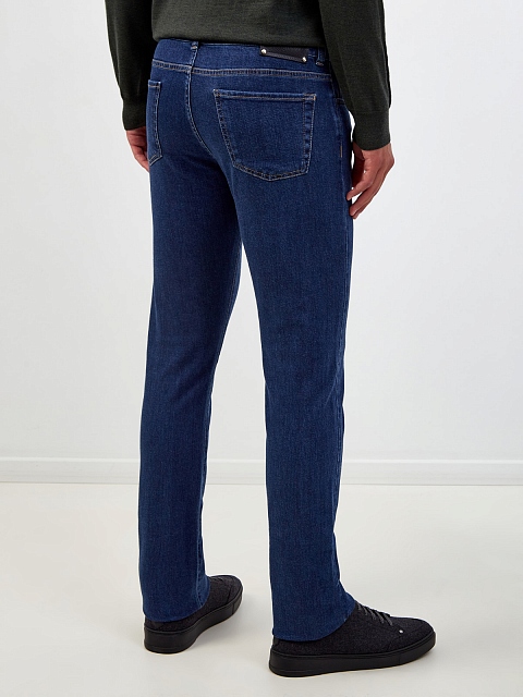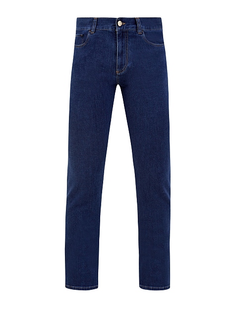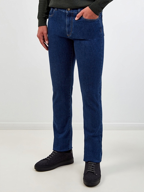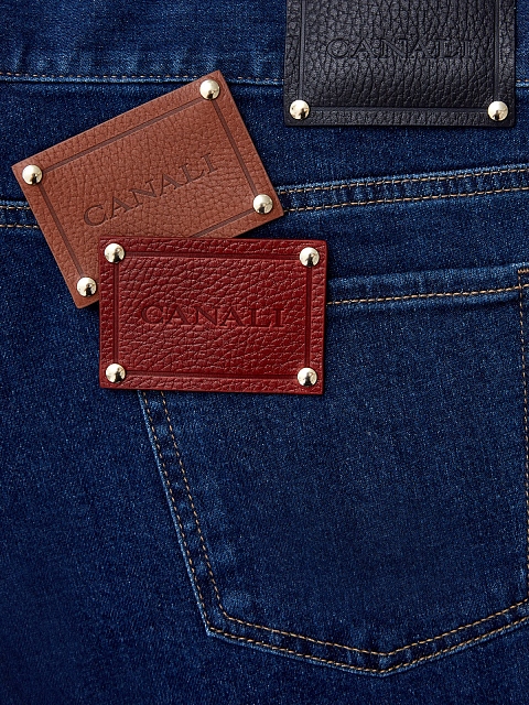 Джинсы от Canali выполнены из хлопкового денима — плотная ткань с добавлением благородных волокон кашемира делает модель идеальной основой для создания повседневных аутфитов. Классический синий оттенок достигнут мастерами бренда вручную, расслабленный акцент в образ вносит контрастная прострочка швов и сменные нашивки трех цветов из кожи на поясе. Детали: вышитый логотип, пять карманов, застежка на молнию и пуговицу. Сделано в Италии.