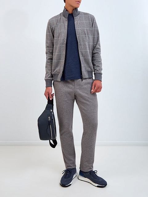 Брюки из плотного меланжевого хлопка с поясом на кулиске
