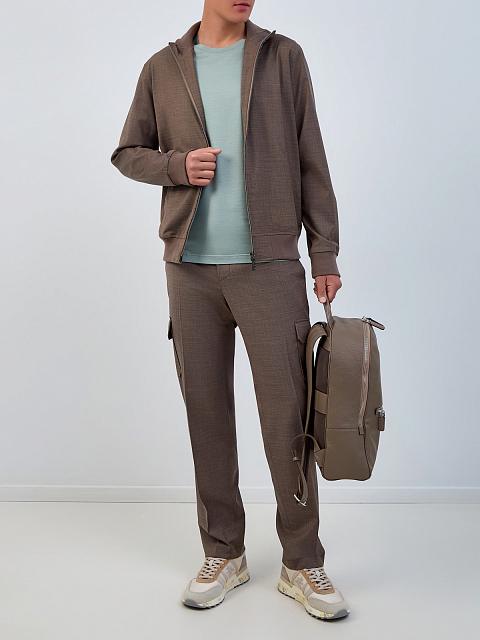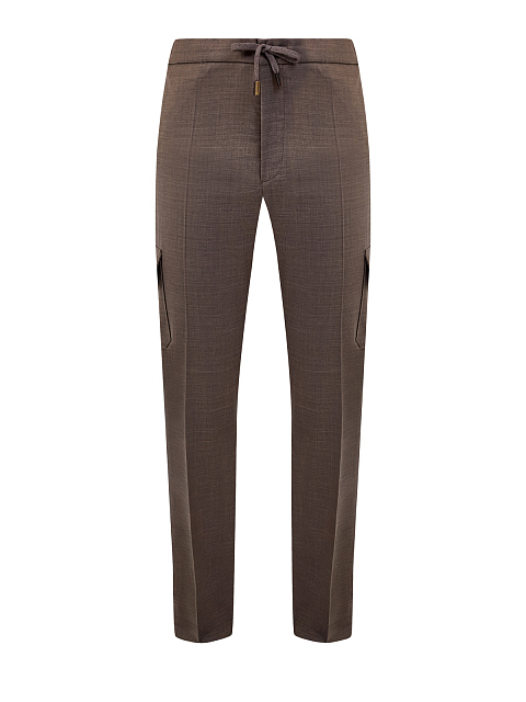 Мужские брюки из гладкой шерсти с карманами-карго и кулиской CAPOBIANCO_M купить за 46 480 руб.