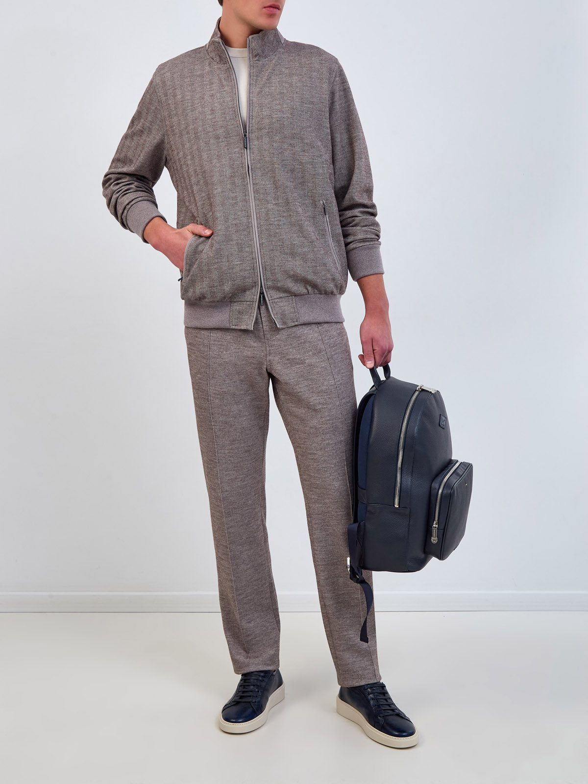 Толстовка-бомбер из шерсти и хлопка с шевронным узором