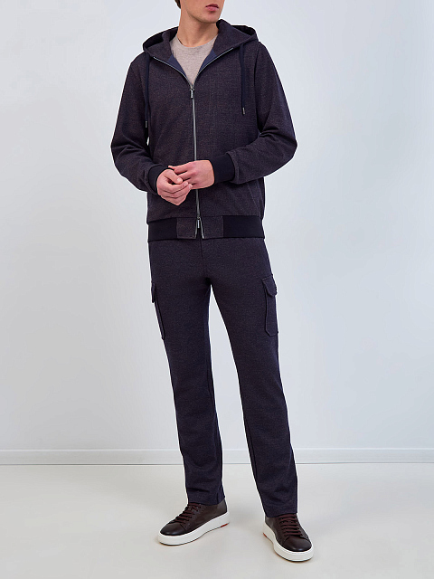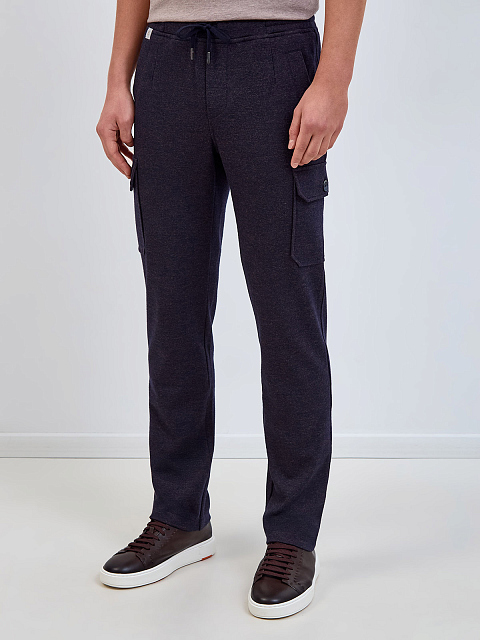 Брюки из меланжевой шерсти и хлопка с карманами-карго