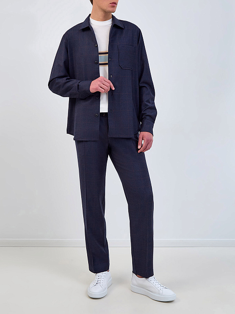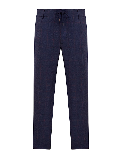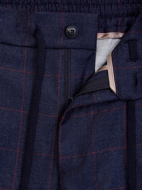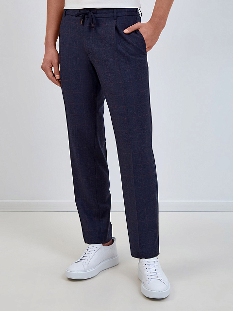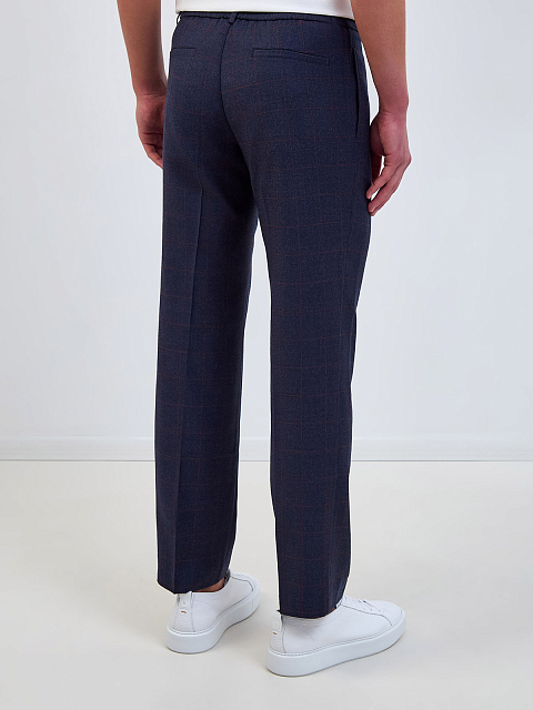 Брюки из шерсти в клетку с защипами и поясом на кулиске