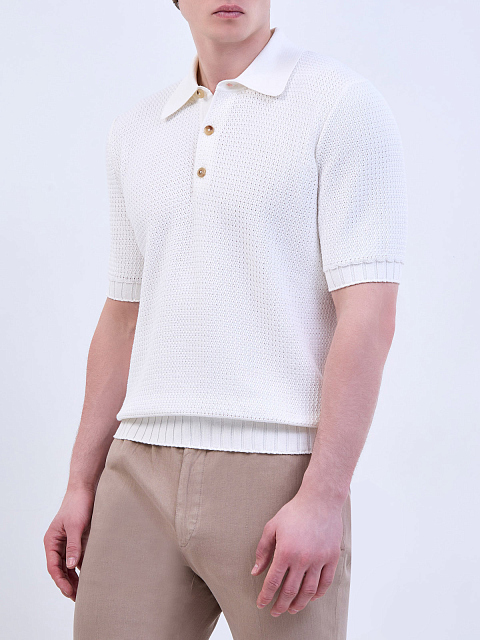 Джемпер-поло из хлопковой пряжи с вязаной отделкой