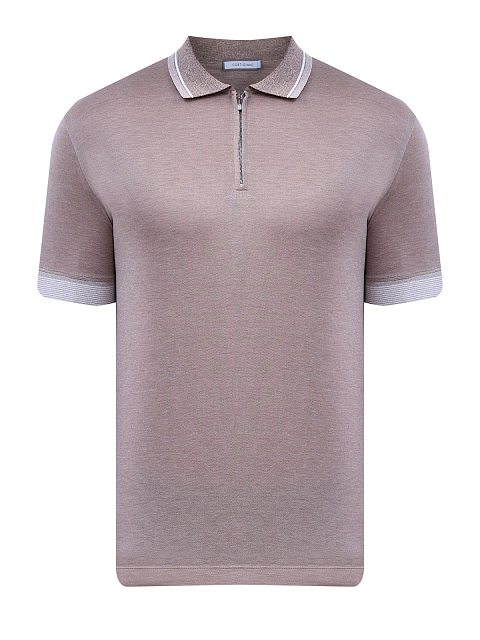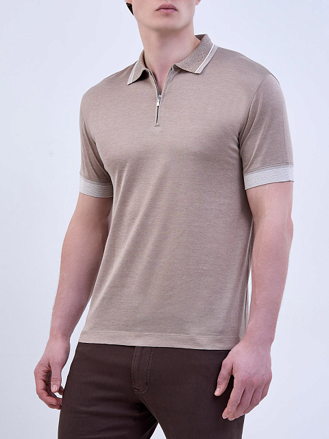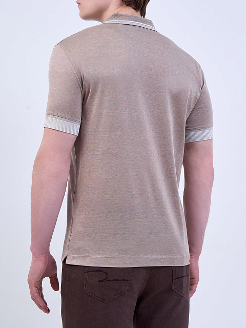 Поло из хлопка и шелка с окантовкой в полоску