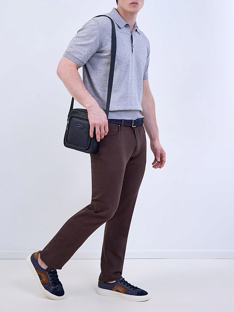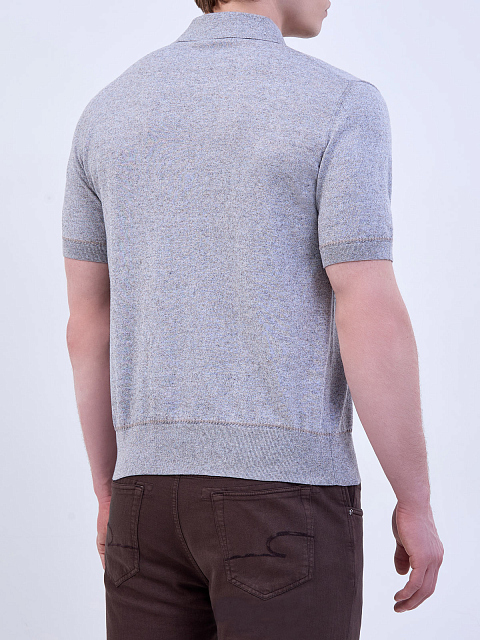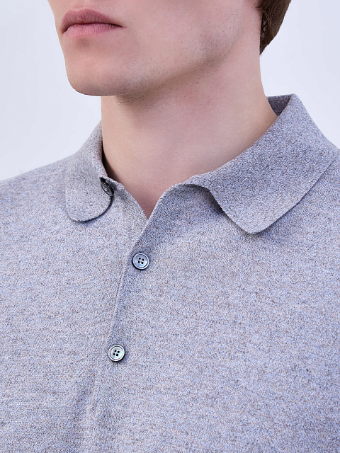 Джемпер-поло из меланжевого хлопка, кашемира и шелка