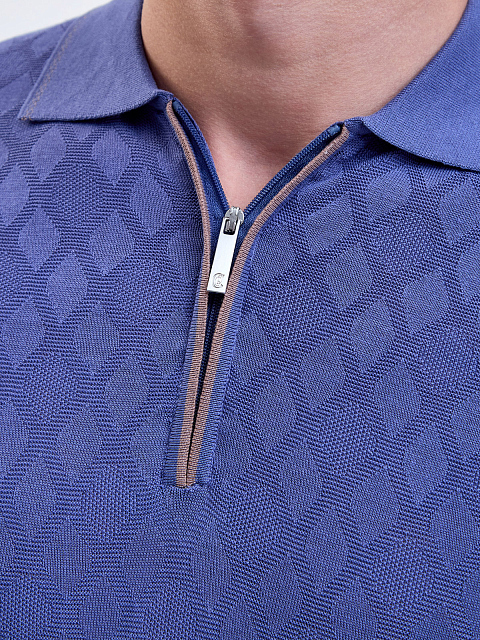 Мужское джемпер-поло с вязаным узором в тон и контрастным кантом CUDGI-M купить за 9 900 руб.