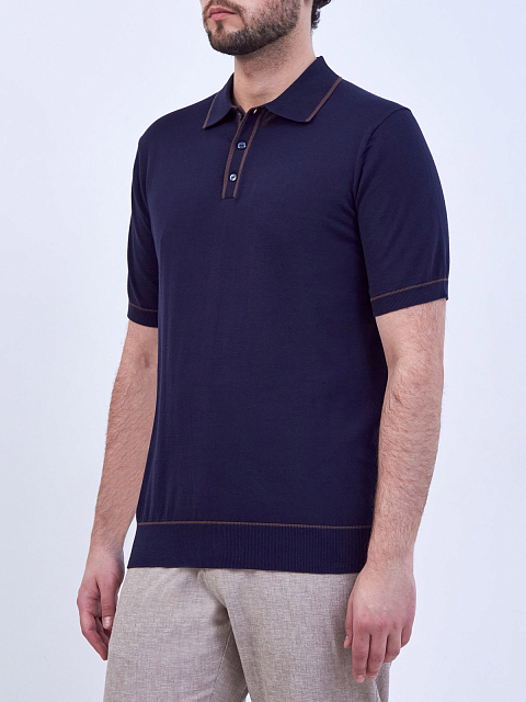 Джемпер-поло из хлопковой пряжи с контрастным кантом