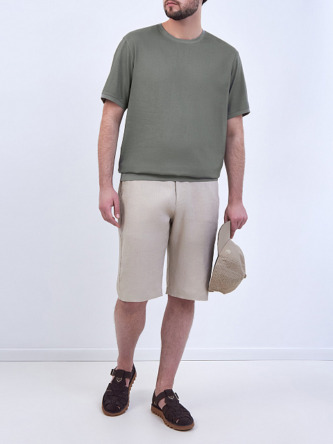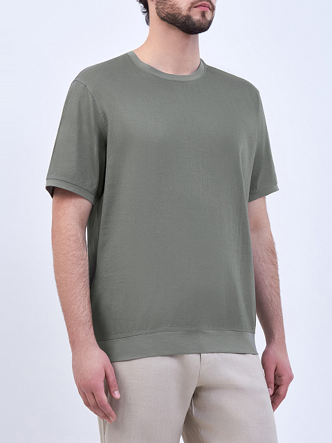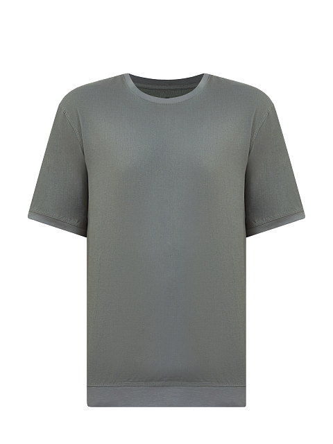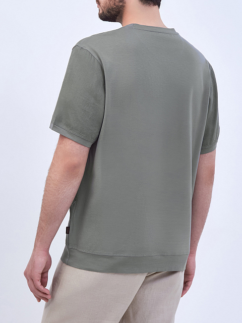 Комбинированная футболка из льна и вискозы с патчем