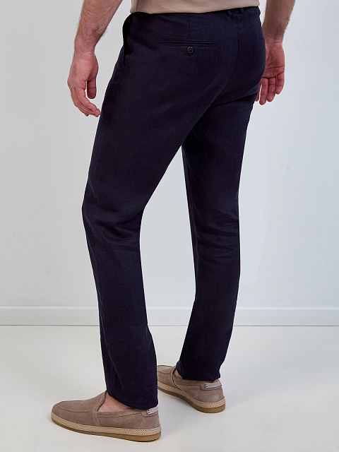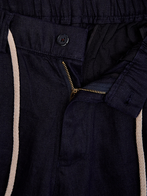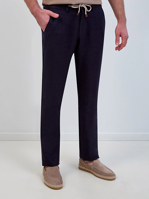 Льняные брюки в стиле sprezzatura с контрастной кулиской