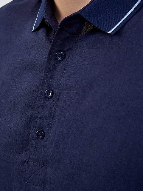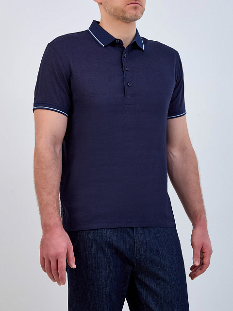 Поло из тонкой льняной ткани с контрастной окантовкой
