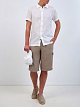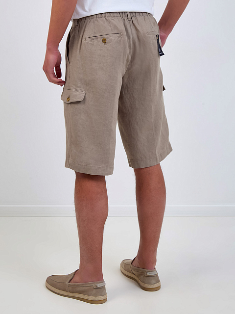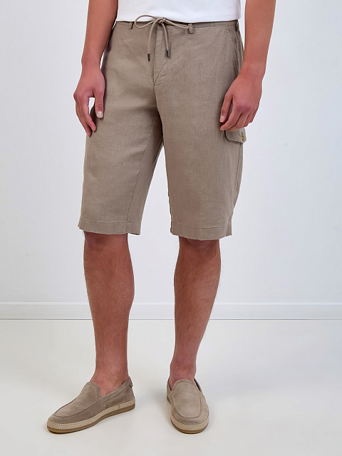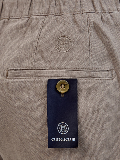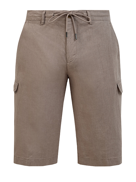 Льняные шорты с поясом на кулиске и вышитым логотипом в тон