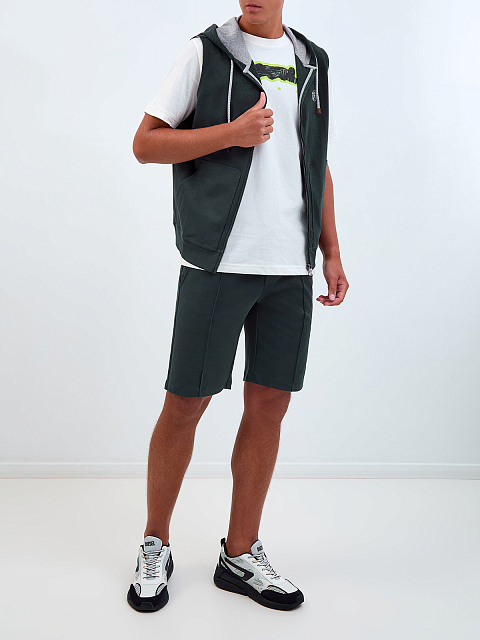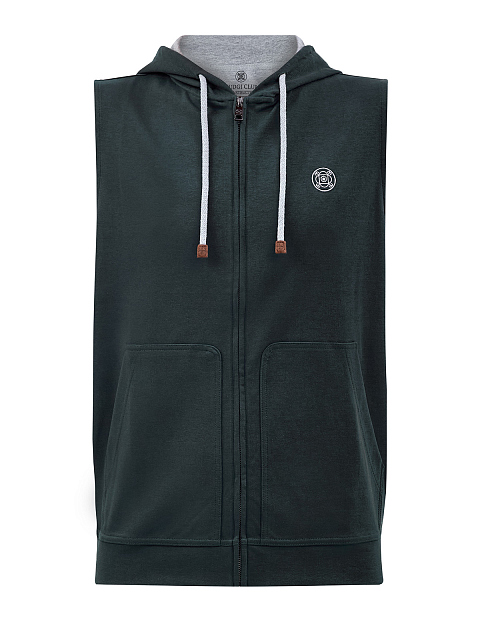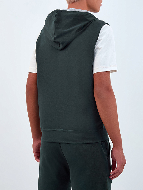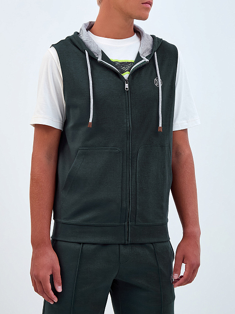 Жилет из эластичного хлопка с капюшоном и контрастным логотипом