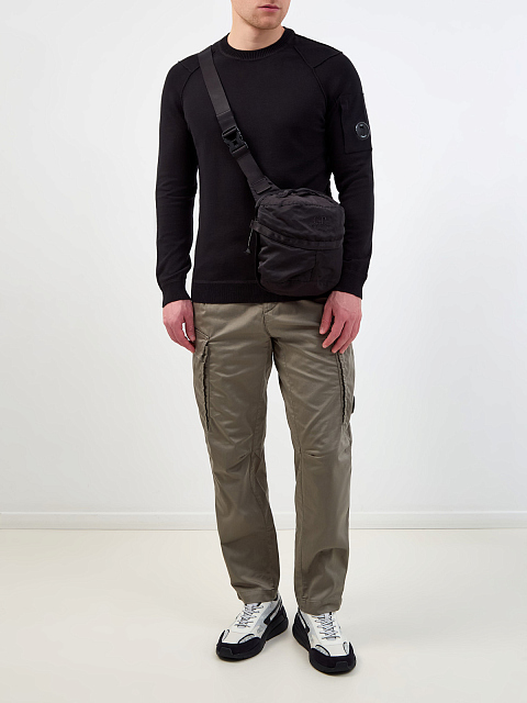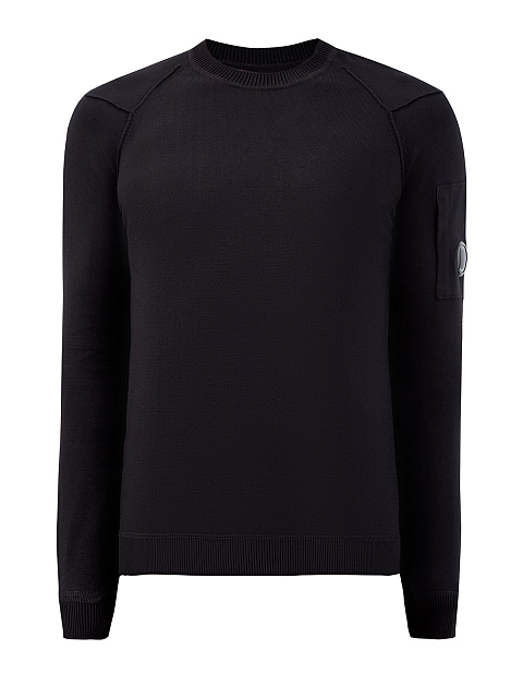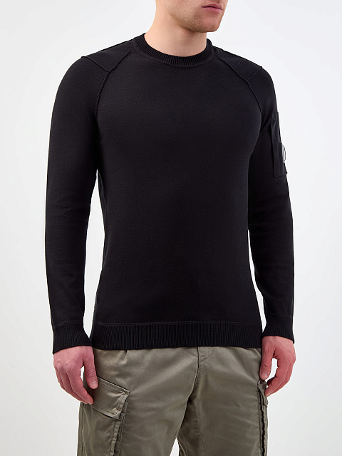 Мужской джемпер в универсальном черном цвете от C.P. Company выполнен из тонкой, но в то же время теплой хлопковой пряжи для оптимального комфорта. Модель с отделкой кромок в английскую резинку дополнена фирменной линзой C.P. Company на кармане рукава. Детали: фактурная прострочка, длинные рукава, круглый вырез горловины.