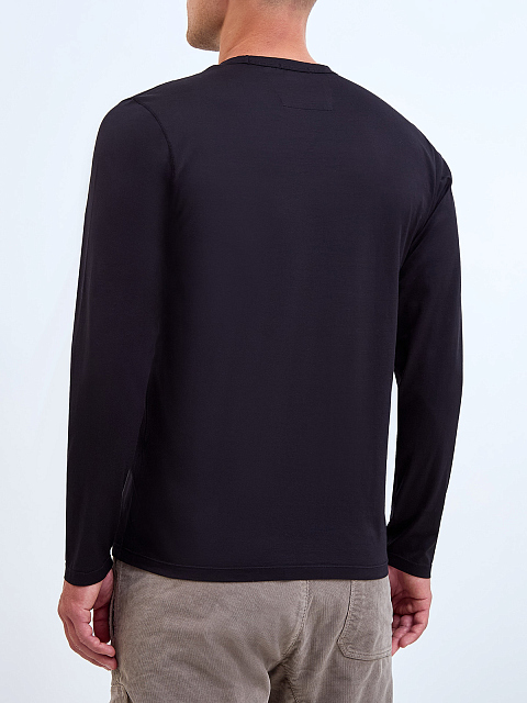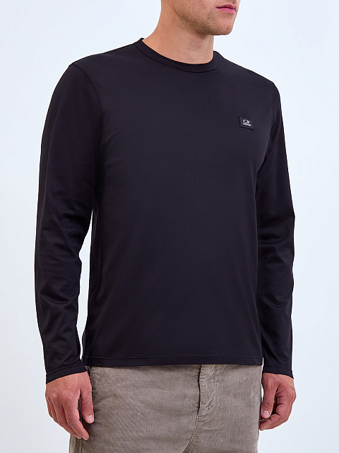 Базовый мужской лонгслив в универсальном черном цвете от C.P. Company. Минималистичная модель создана из натурального хлопкового джерси — дышащая и гигроскопичная ткань обеспечивает максимальный комфорт в движении. Детали: нашивка с логотипом, круглый вырез горловины, простроченные швы, длинные рукава.