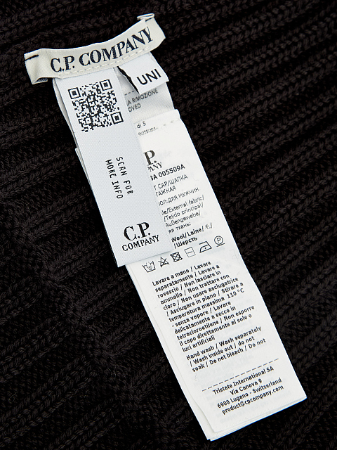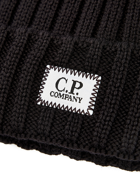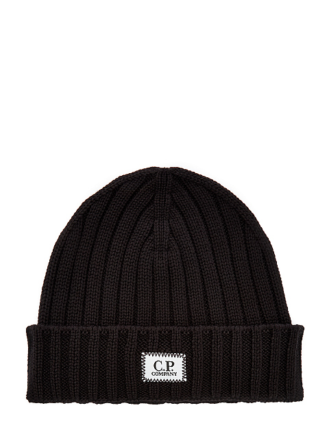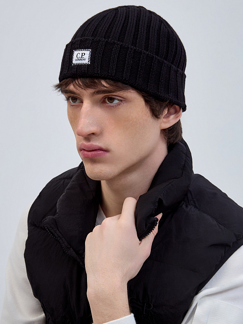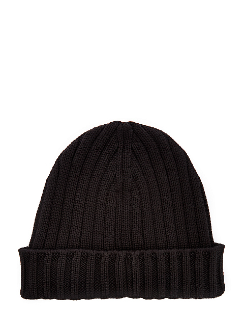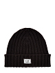 Шапка-бини из шерсти эластичной вязки с нашивкой