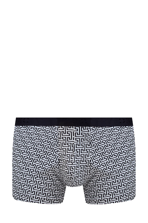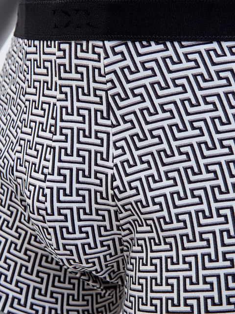 Боксеры от Derek Rose выполнены из мягкого и эластичного хлопка Pima, свойства натуральной ткани обеспечивают комфортную посадку по фигуре. Модель дополнена принтом с черно-белым геометрическим мотивом, а также однотонным поясом с жаккардовой монограммой. Комфорт обеспечивает специальная гладкая обметка швов.
