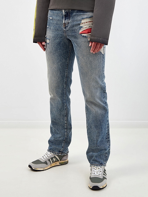 Мужские джинсы в винтажном стиле из выбеленного денима с прорезями DIESEL-M купить за 13 800 руб.