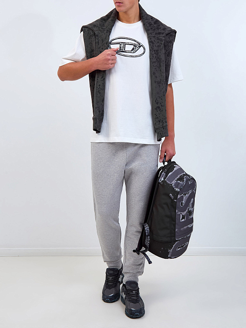 Мужские брюки-джоггеры из меланжевого хлопка с поясом на кулиске DIESEL-M купить за 9 900 руб.