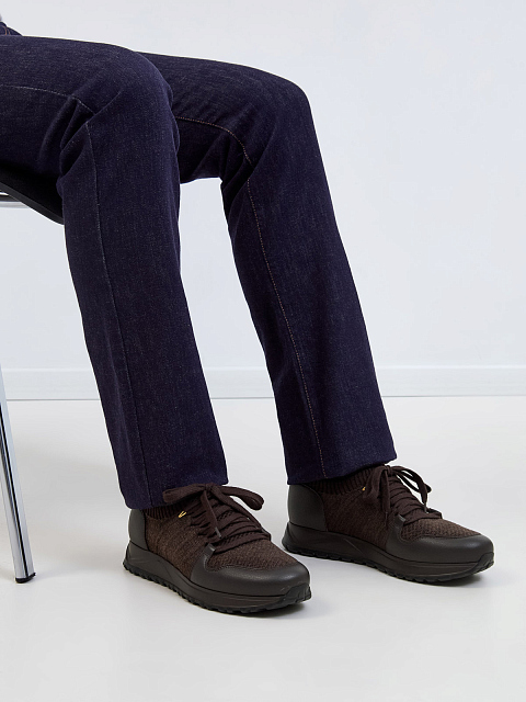 Мужские комбинированные кроссовки из кожи и текстиля с мехом DOUCALS_M купить за 47 120 руб.