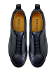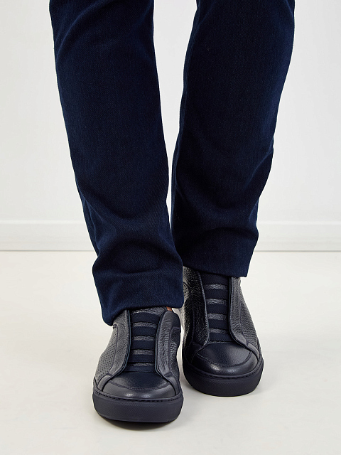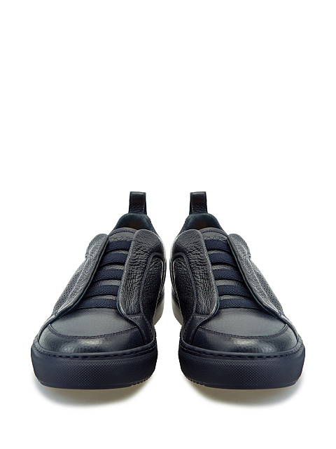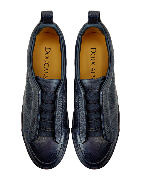 Минималистичные мужские кеды от Doucal’s созданы вручную из крупнозернистой кожи с матовой поверхностью. Эластичные ленты вместо шнуровки и перфорация в лазерной технике делают модель идеальной для завершения образов в стиле casual. Детали: тисненый логотип, противоскользящий протектор. Сделано в Италии.