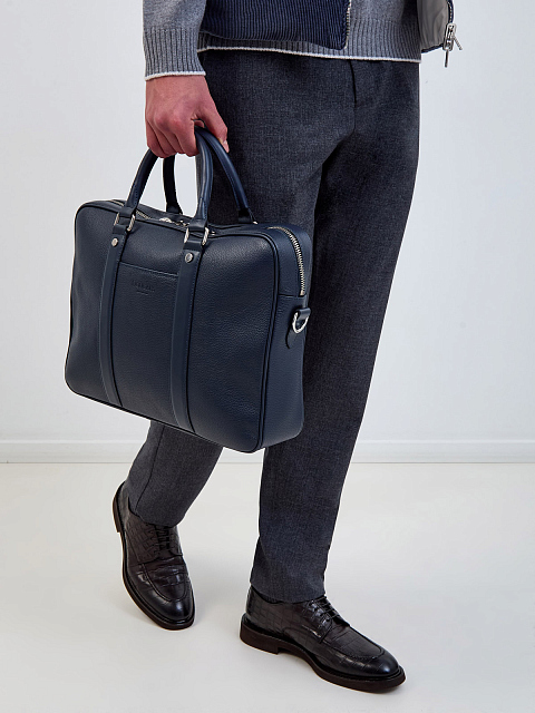 Сумка для ноутбука из крупнозернистой кожи с плечевым ремнем