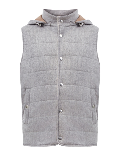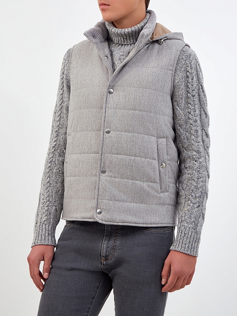 Жилет из шерстяной фланели и кашемира со съемным капюшоном