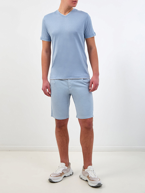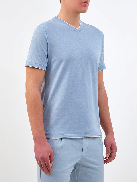 Хлопковая футболка с V-образным вырезом и контрастной окантовкой