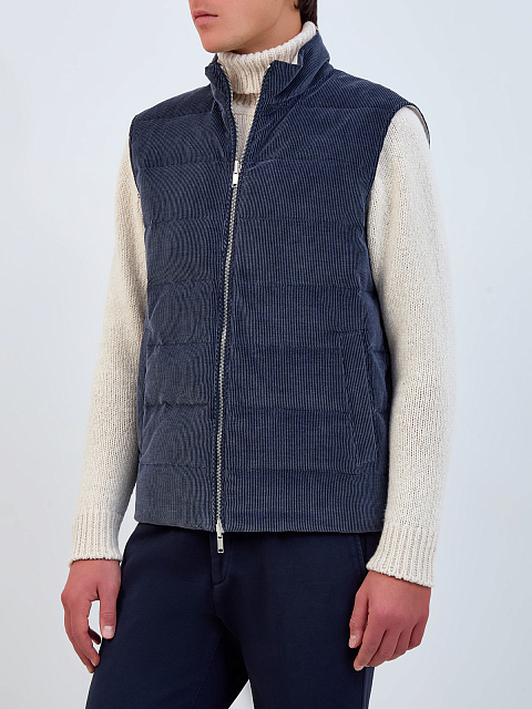 Двусторонний жилет из вельвета и нейлона с пуховым утеплителем