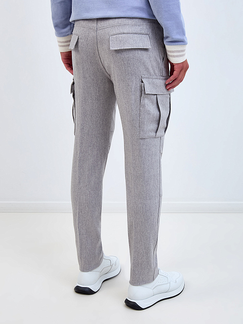 Брюки из меланжевой шерсти и кашемира с карманами-карго