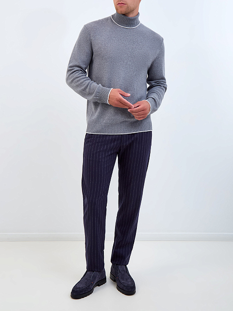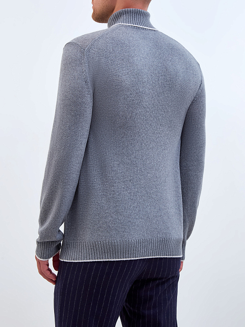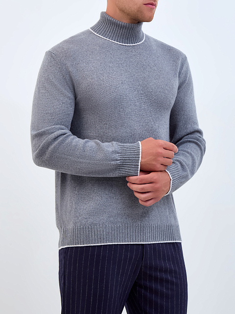 Свитер из тонкой шерстяной пряжи с контрастной окантовкой